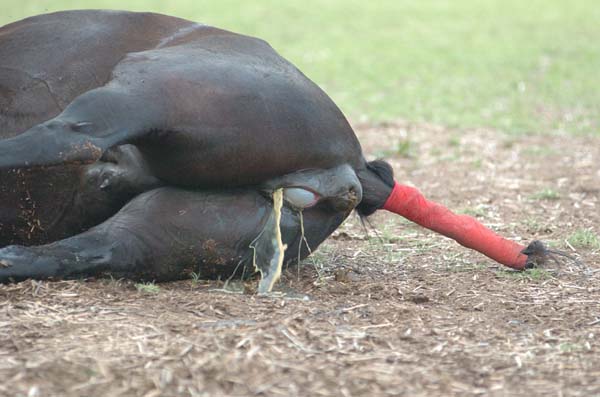 Al pasar las caderas del feto hayan pasado por la pelvis de la yegua, la yegua hace una pequeña pausa.