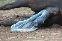 Mientras sale la bolsa amniótica, se sigue observando la salida de líquido alantoideo y pueden apreciarse las pezuñas anteriores o posteriores.